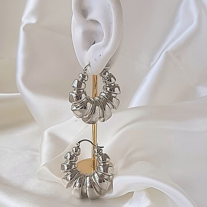 Brinco lindo super em alta . È um brinco grande e oco e mede 4 cm de altura e 4 cm de largura. Mas é muito leve . Confeccionado com a tecnica Italiana chamada eletroformação .
