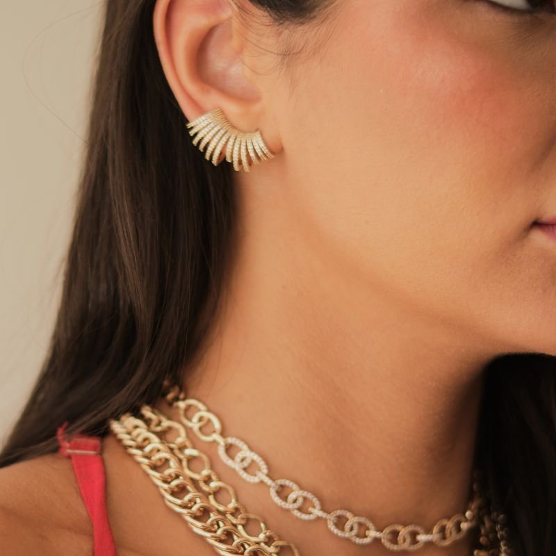 Brinco Curvado Carreiras Zirconia Dourado