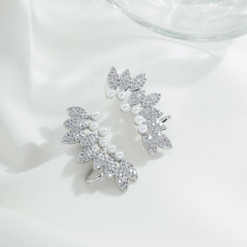 Muito chique! Um brinco que chamamos de earcuff para usar no lóbulo da orelha com detalhes pérola e losangos pequenos inspirando formato de folha todo com cravação de microzirconias . Lindo