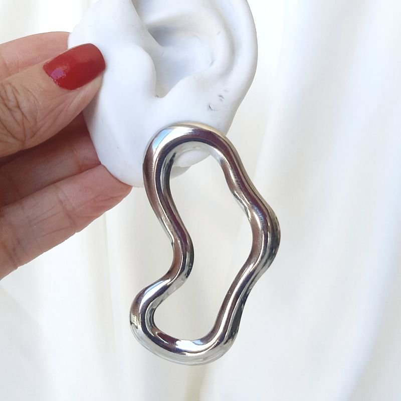 Um brinco de impacto com design em curvas , tendência moda 2025. Os maxi brincos se encaixam muito bem em looks mais arrojados ou mesmo para dar destaque em looks basicos e transforma- lo em algo especial . Use a moda a seu favor usando os acessórios para dar sentido ao todo .