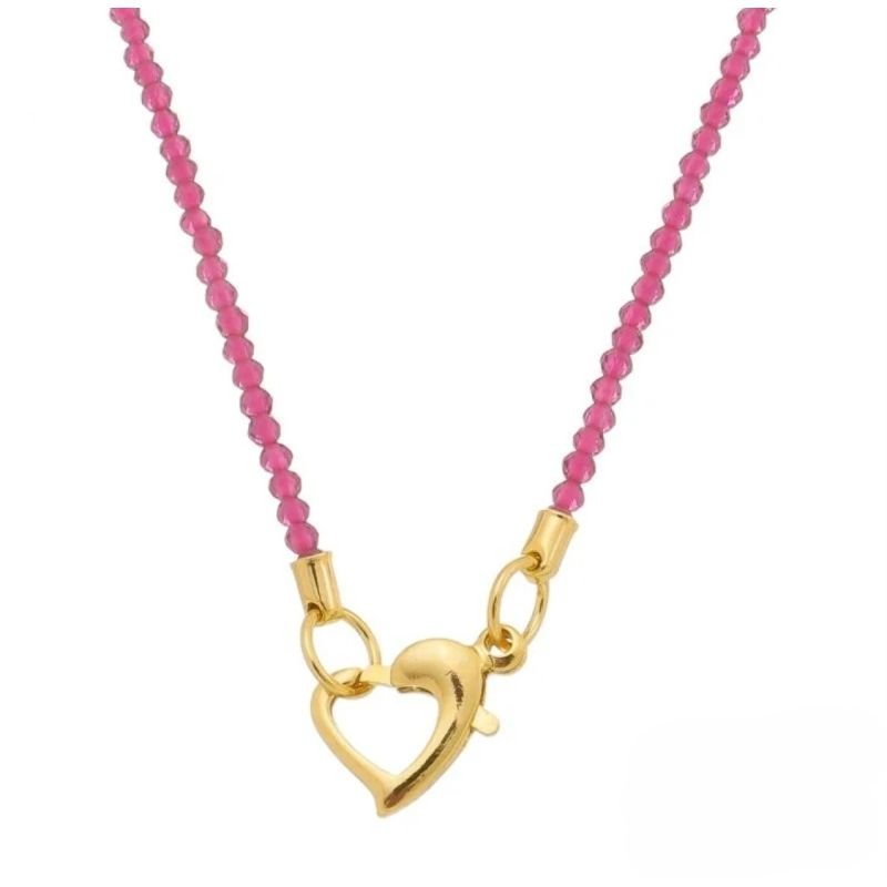 Esse modelo ficou especialmente muito delicado, seguindo a tendencia das chokers , é mais justinho e tem um fecho de coração para ser usado na frente como um detalhe de destaque , ou atrás , como um colar bãsico de cristalzinho colorido. A cor Pink é a cor do veráo . Não perca esse colar .