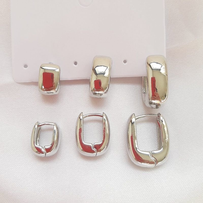 Kit trio de Brincos Quadrado Prateado