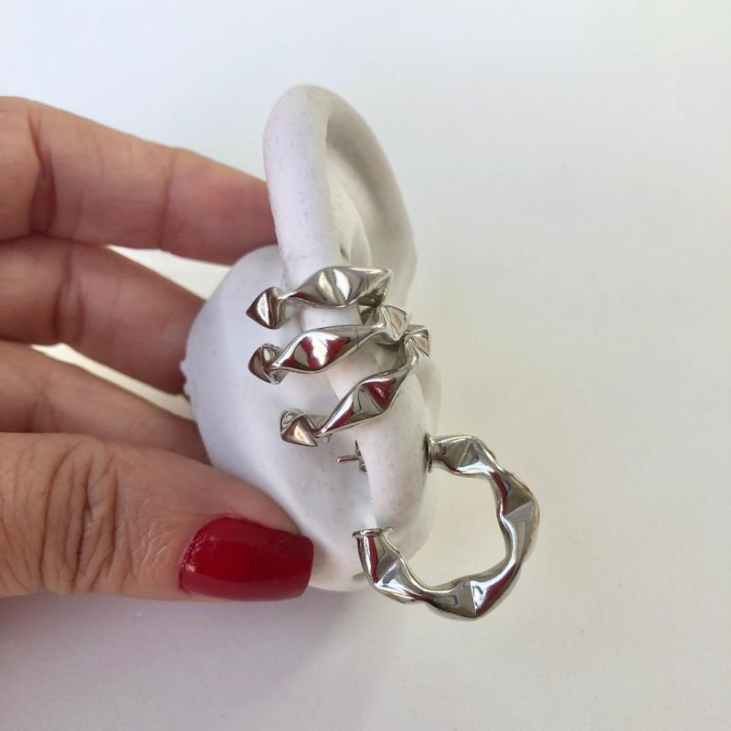 Mix composto por 1par de brincos argola media com desing ondulado. 1trio de piercing fake que se compoe de 3 unidades e tamanhos graduados. pequeno, medio e grande. uma combinação fashion e perfeita para quem ama estilo, praticidade e aquele toque moderno que transforma qualquer look!