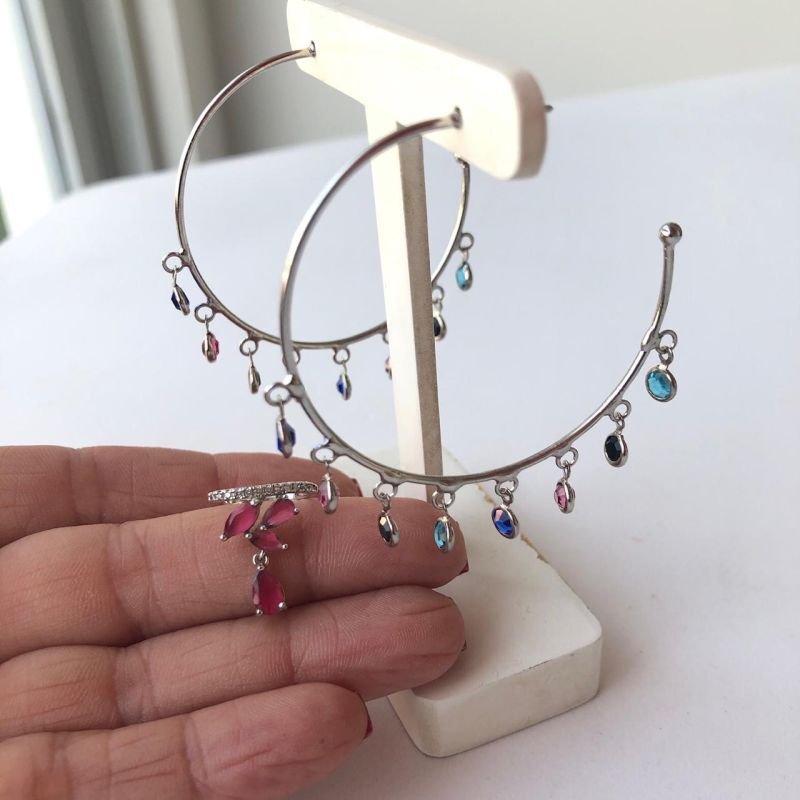 Mix composto por 1par de brincos argola média com pingentes coloridos. e 1 piercing fake. uma combinação perfeita para quem ama estilo, praticidade e aquele toque moderno que transforma qualquer look!