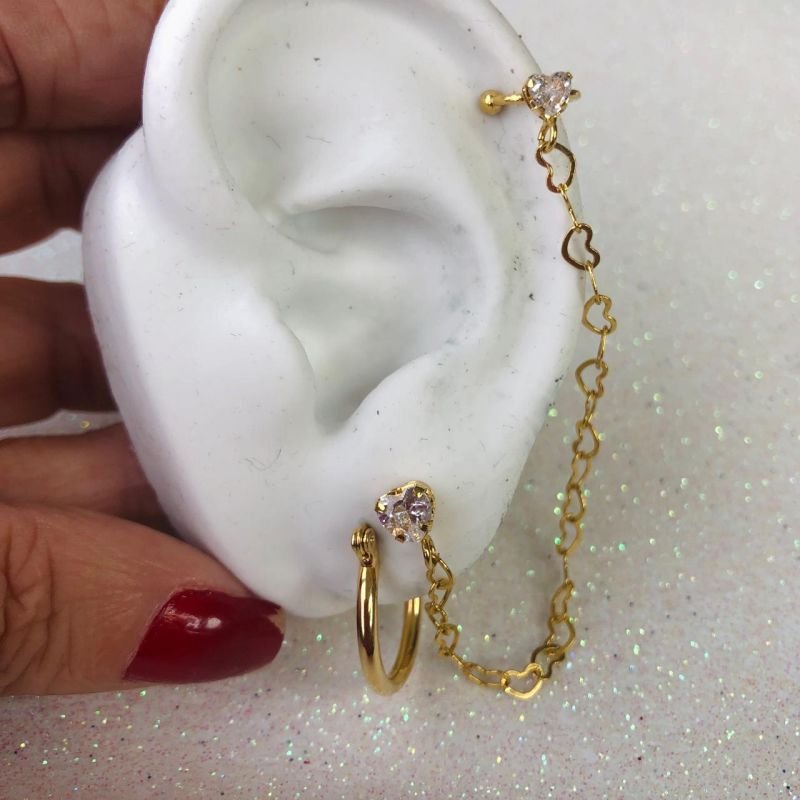 Mix composto por 1par de brincos argolinha basica dourada, e 1par de brincos com corrente e piercing fake. uma combinação perfeita para quem ama estilo, praticidade e aquele toque moderno que transforma qualquer look!