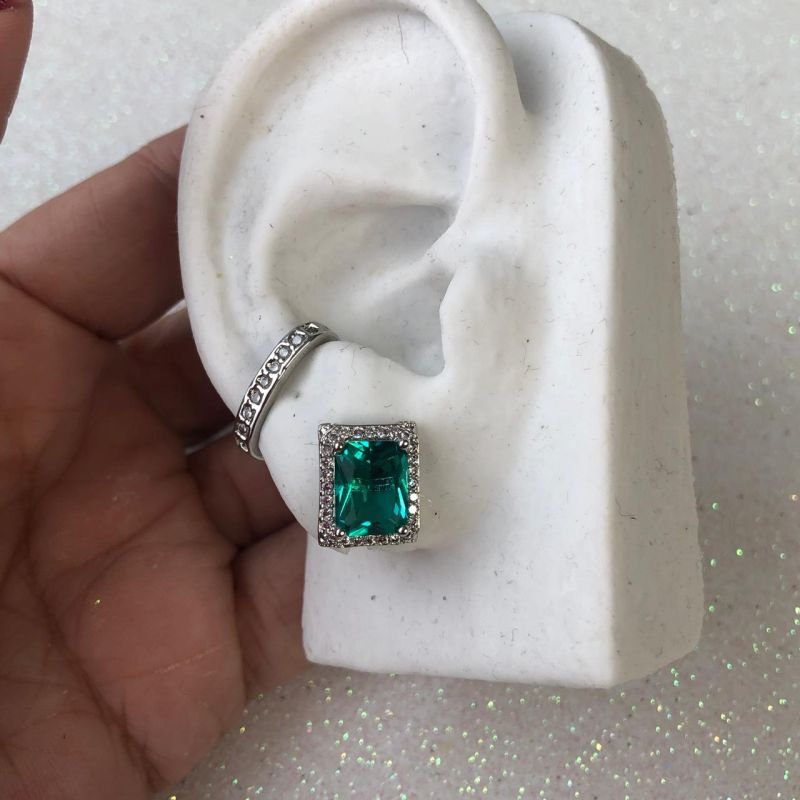 Mix composto por 1par de brincos de pedra cor turmalina em formato retagular, contornado por pequenas zirconias que garantem um brilho sofisticado, e 1piercing fake oval com zirconias. uma combinação perfeita para quem busca um toque de elegancia e delicadeza nas produções do dia a dia.